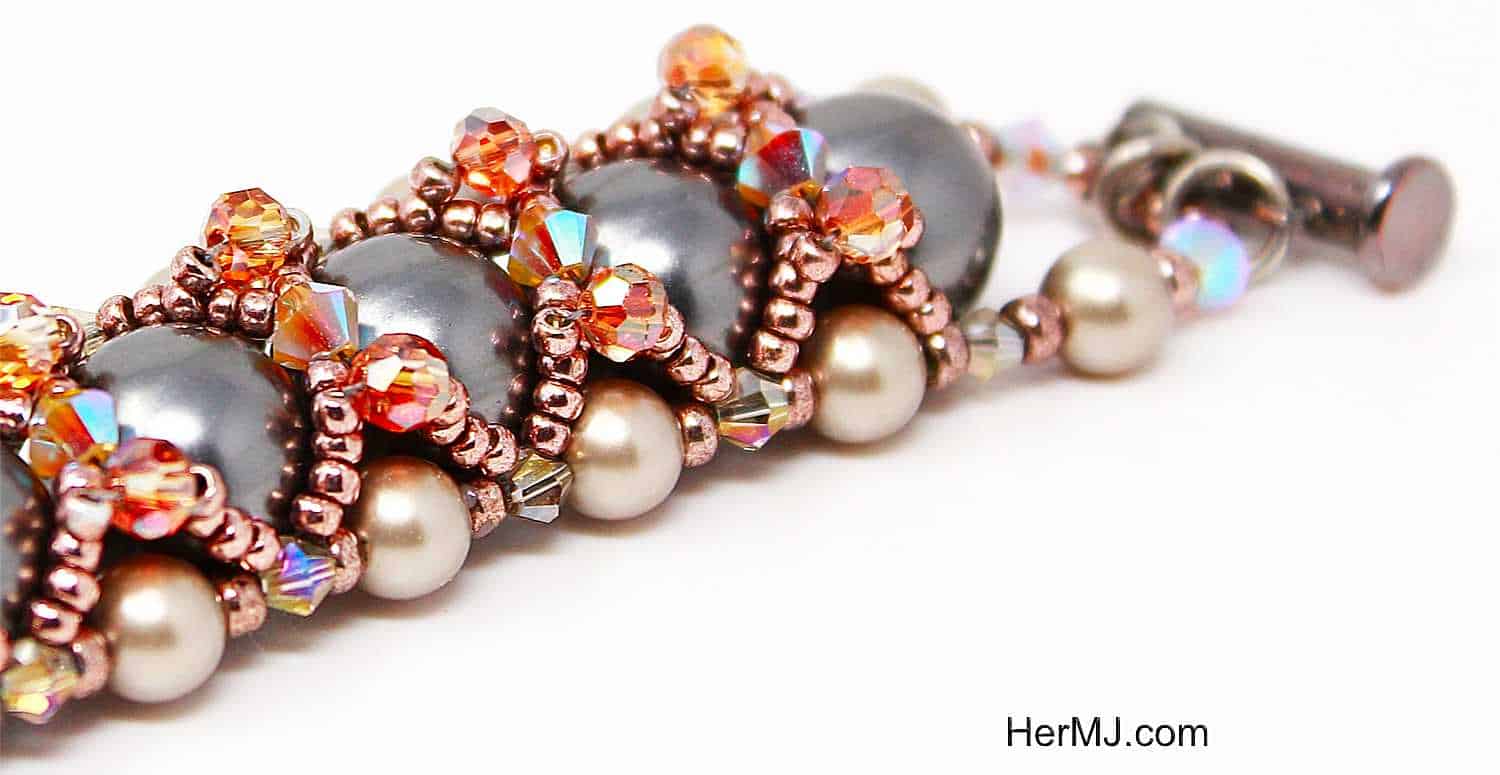 The primary challenge in mixing these two elements is bringing new life into a piece; pearls tend to have uniform, smooth surfaces. To create contrast, mix it up with color or texture.