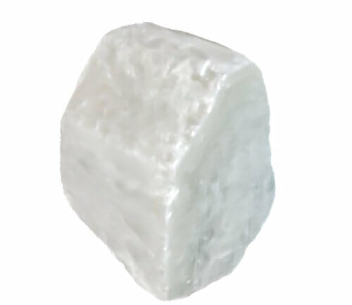 This gemstone is the softest material on the Mohs scale and is composed of a hydrated magnesium silicate clay mineral. When scratched this stone produces a pale white streak. One example of this mineral is soapstone which is a metamorphic rock composed predominantly of talc.