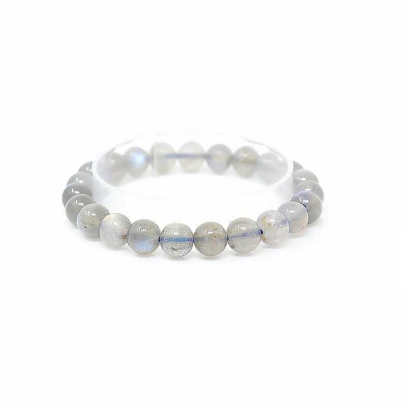 The Grey Moonstone Gemstone Bracelet features 8 mm polished beads that sparkle with rainbow flashes of blue. This striking fashion statement is unique and a perfect complement to any wardrobe, and is a perfect accessory for both men and women. Moonstone is admired for its beautiful qualities.