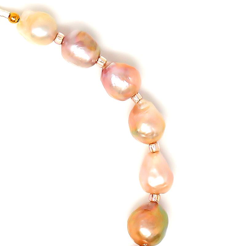 The Golden Swirl Gelato Collection Freshwater Pearl Necklace is an exquisite piece of jewelry made from high-quality baroque pearls in shades of cream, mauve, and gold that range in size from 12-14 mm. Each pearl has been hand-selected for its superior quality. The necklace is 18 inches long and fastens with a gold-filled toggle clasp, making it a stunning addition to any outfit.