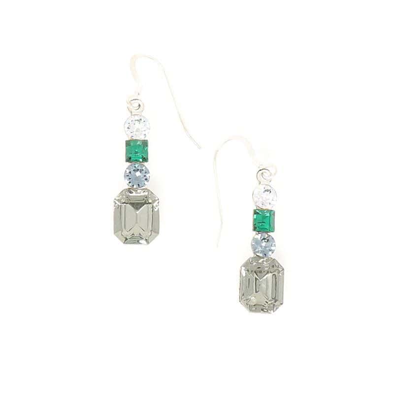 HerMJ.com Perfect Jewelry ApparelThe Paris Silver Lights Crystal Earrings include grey, emerald green, and beautiful clear Austrian designer crystals. A glamorous set of sparklers for your ears, complete with sterling silver earwires. Wear them for birthdays, anniversaries, graduations, or casually with your favorite jeans or athleisure.