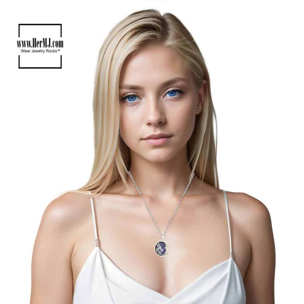 Elegant, delicate, and naturally beautiful, the Sodalite Moon and Stars Pendant Necklace sparkles with a stunning sodalite gemstone. In its sparkling bezel with three companion stars and a smiling silver-tone moon watching admiringly, the pendent is a beautifully rich combination of blues, greys, and white. Fastened by a sturdy lobster clasp, the necklace can be worn by men and women with equal stylish flair. A wonderful compliment to both formal and casual wear.
