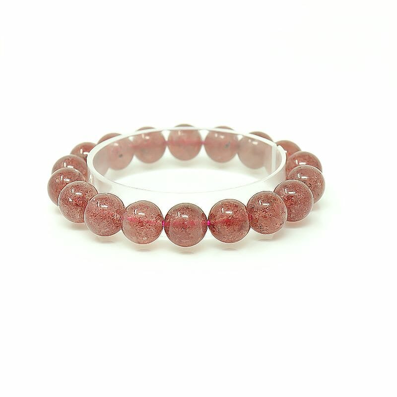 The distinctive Strawberry Quartz Gemstone Bracelet is designed with brilliantly colorful 10.5 mm high-grade stones, and is perfect for stacking! The bracelet is equally beautiful on the wrists of both men and women.