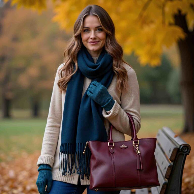 To mix and match fall accessories, play with various textures and colors. Combine chunky scarves with sleek leather bags, and layer statement necklaces over cozy sweaters. Experiment with contrasting patterns for a fresh, innovative look.